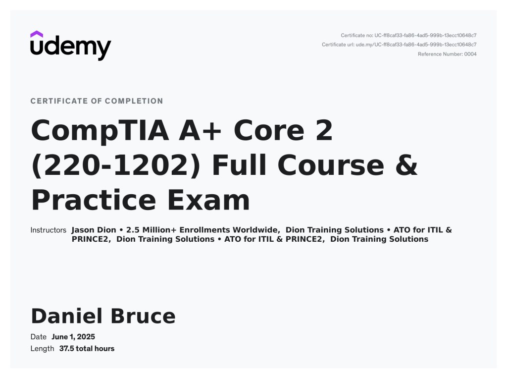 The CompTIA A+ Core 2 (220-1202) Certification Course prepares IT professionals for the globally recognized CompTIA A+ Core 2 exam, covering essential IT fundamentals like operating systems, security, and troubleshooting through hands-on labs and expert-led instruction.